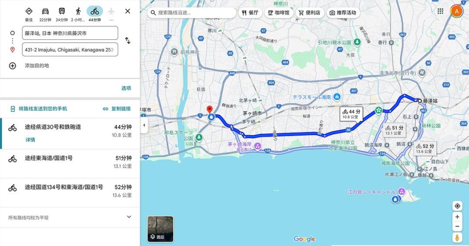 起点确定了,终点显而易见是藤泽站。