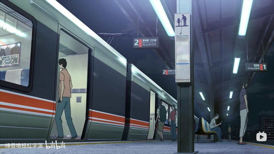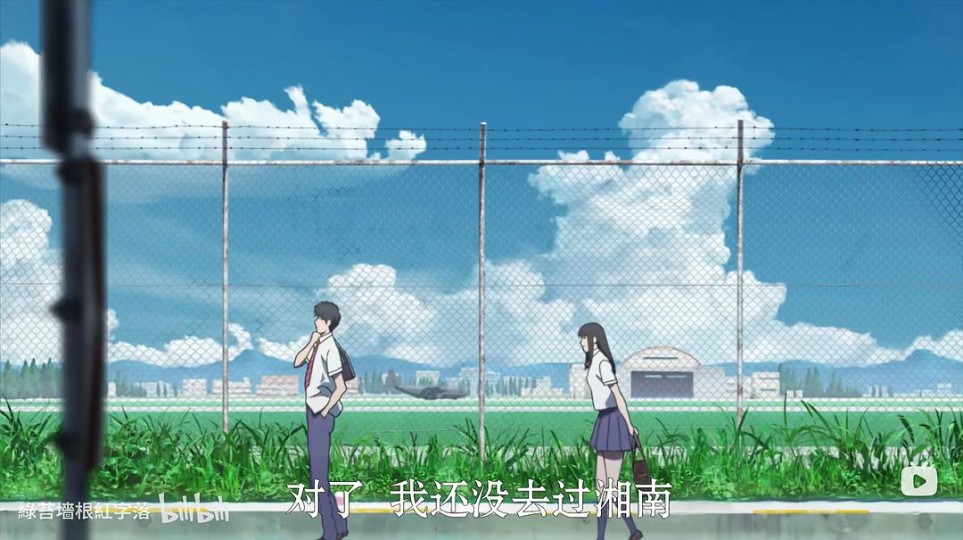 要说还有什么可以再找找,那就是最后烟花离别时女主角所站立的草地吧。男主角一家出发离开时方向和逃学一样是向西南。列车靠右出发,男主角坐在左侧,本应会看到对侧铁轨,但画面里并非如此。
