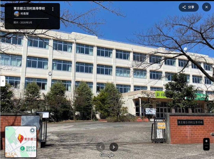 那么问题就只有:从哪里向北走去车站会经过基地呢?虽然范围已经显著缩小到离基地较近的几所中学,但遗憾的是,按谷歌地图导航向湘南海岸的最方便路线,并没有哪所学校的学生真的需要向北途径基地边才能到达车站。不过,考虑到铁丝网和军事基地的意向是渡边有意加入,逃学的主人公们绕个小远也属合理,那还是可以找出一个相当合理的备选对象:東京都立羽村高等學校。从这里出发,向北沿着基地正好可以走到箱根崎站,再坐两站八高线就能到达换乘青梅线的拝島。