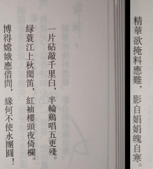 今天正好读到《红楼梦》脂评汇校本 典藏版 第48回《滥情人情误思游艺,慕雅女雅集苦吟诗》。 因为本回的故事其实和蔡导本片的故事完全不一样,所以只能猜测导演用典出处来自于此,蔡导是中戏文学系毕业,所以他看过《红楼梦》一点不奇怪。 至于田中绢代的《月升中天》是否用典来自于此不得而知。因为编剧是小津安二郎,他看过《红楼梦》我也不会奇怪。 同时可以看作导演的一种自谦,因为香菱连给黛玉老师做两首不佳后,第三首终于赢得好评,第二首不好后,她甚至说出如果再不好,索性【死】也不作诗了。