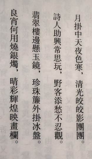 十二金钗副册中的香菱,她学诗的作的首作,第一句就是“月掛中天”